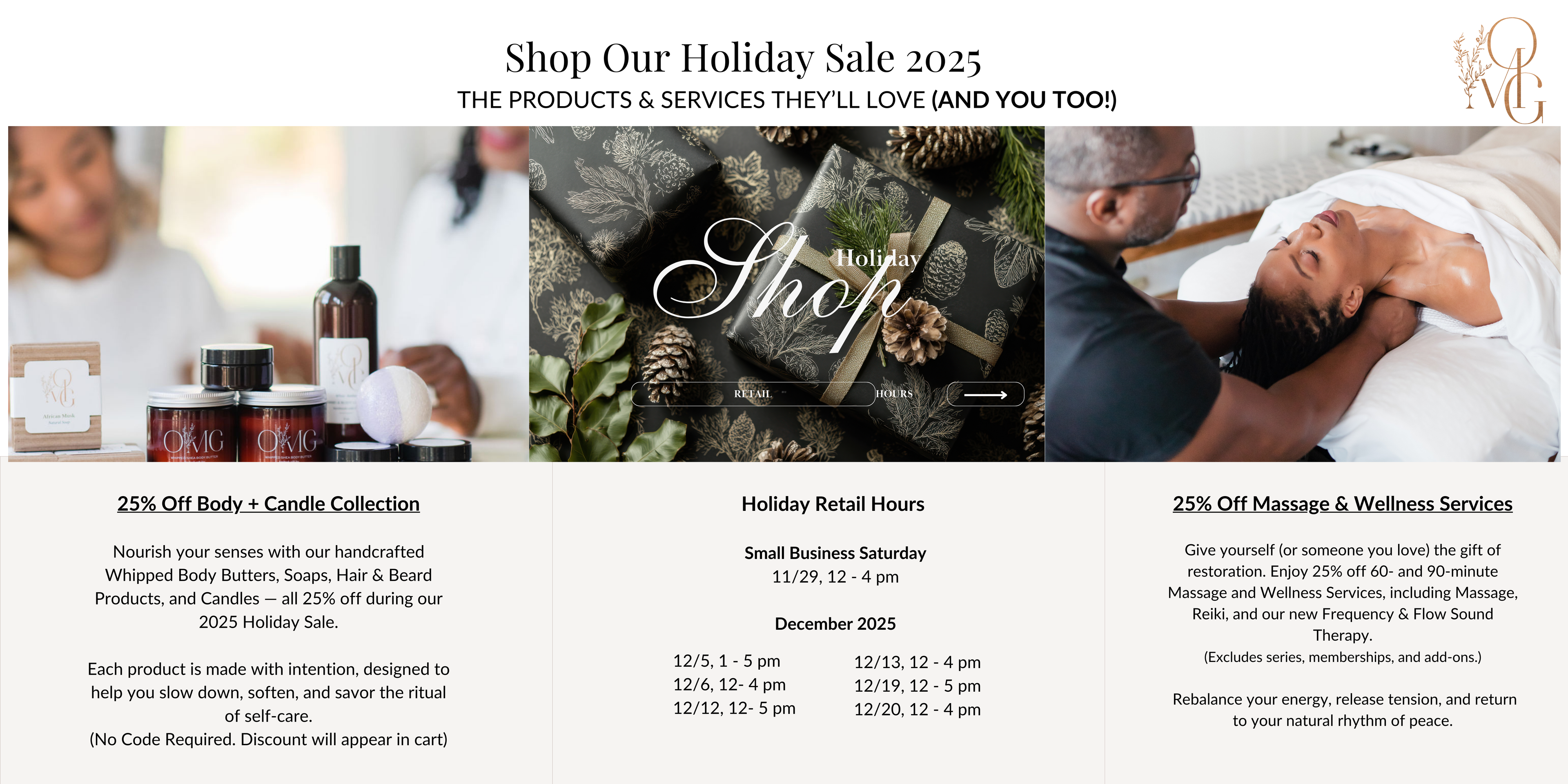 Welcome to our holistic wellness boutique! We're your destination for natural bath & body products, therapeutic services, and holistic programming. Beyond our incredible offerings, we're dedicated to empowering you in stress management, self-care practices, and the journey to living your best life.
